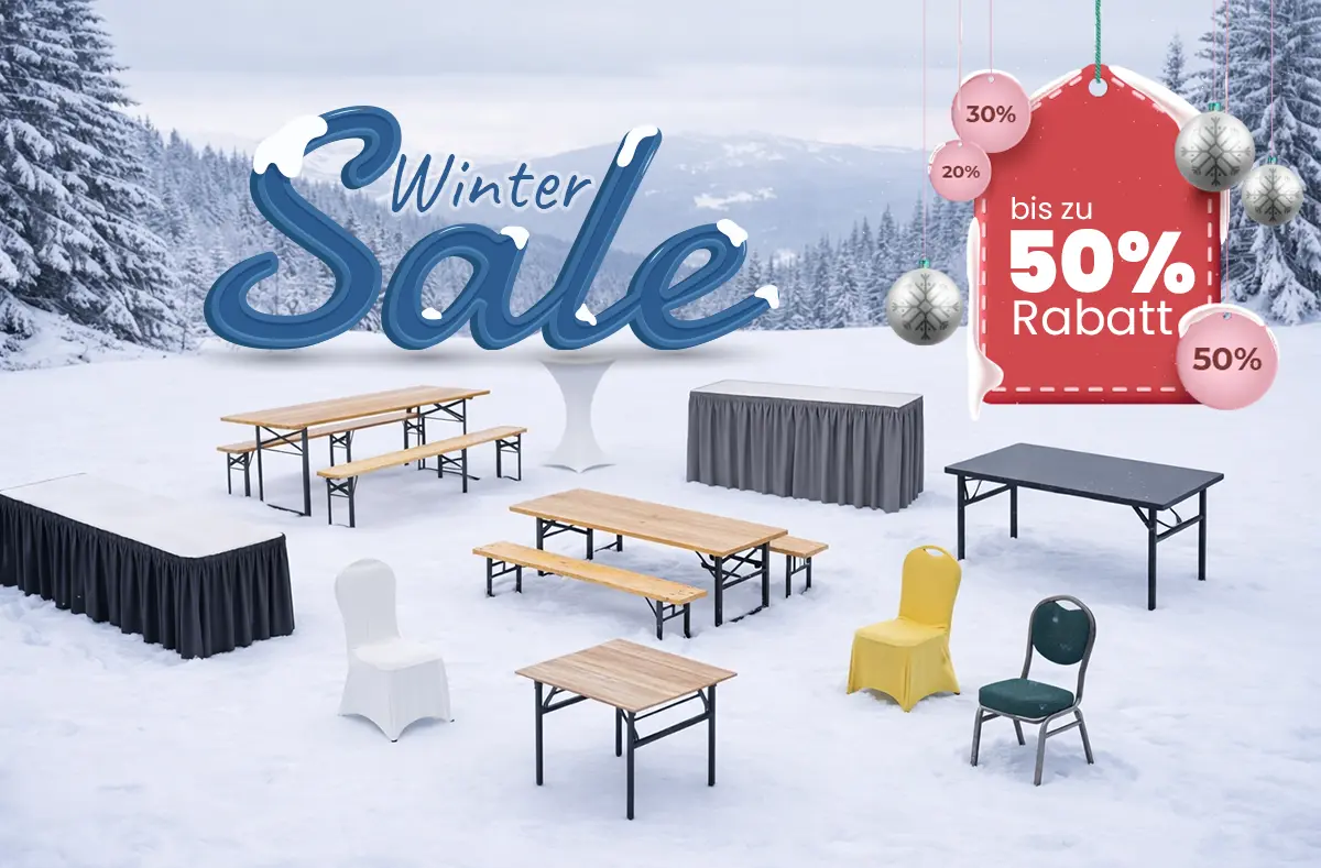 Für Feste im Freien oder temporäre Veranstaltungen benötigen Sie Möbel, die schnell auf- und abgebaut sind und gleichzeitig robust bleiben. Unsere Festzeltgarnituren, Klapptische und Bänke sind genau dafür gemacht: stapelbar, widerstandsfähig und vielseitig einsetzbar – vom Stadtfest bis zum Firmenjubiläum.